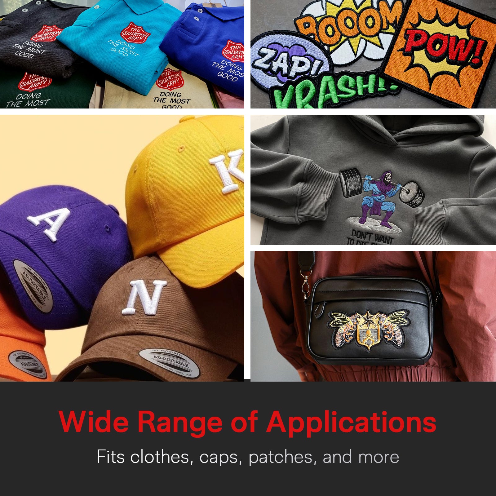 It works on clothing, hats, patches, bags, socks, and more—perfect for personalized projects and small businesses. -