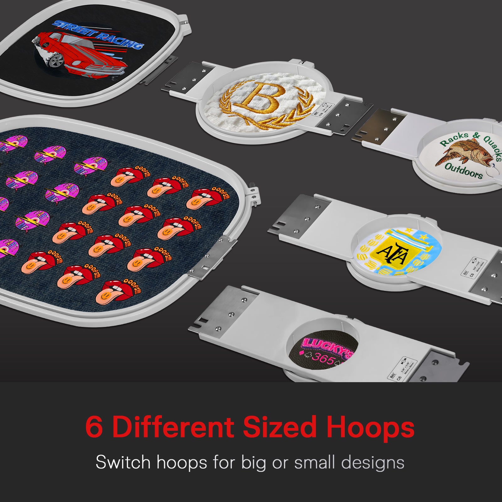 | Hoops Included | 6 different sized hoops | 6 different sized hoops | 6 different sized hoops |