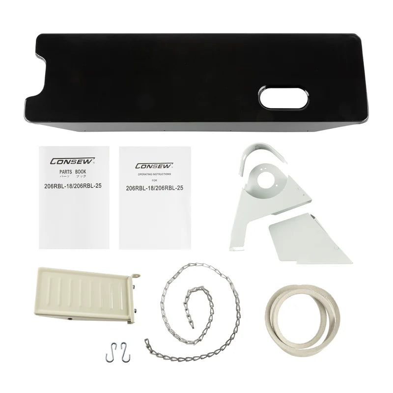 The Consew 206RBL-18 is a long-arm, single-needle, heavy-duty lockstitch machine featuring triple feed (drop feed, needle feed, and walking foot) for superior fabric control and precision. Engineered for durability and smooth operation, it is ideal for sewing a wide range of materials — from light synthetics to heavy leather, vinyl, and canvas — making it a top choice for upholstery, marine, and outdoor gear manufacturing.