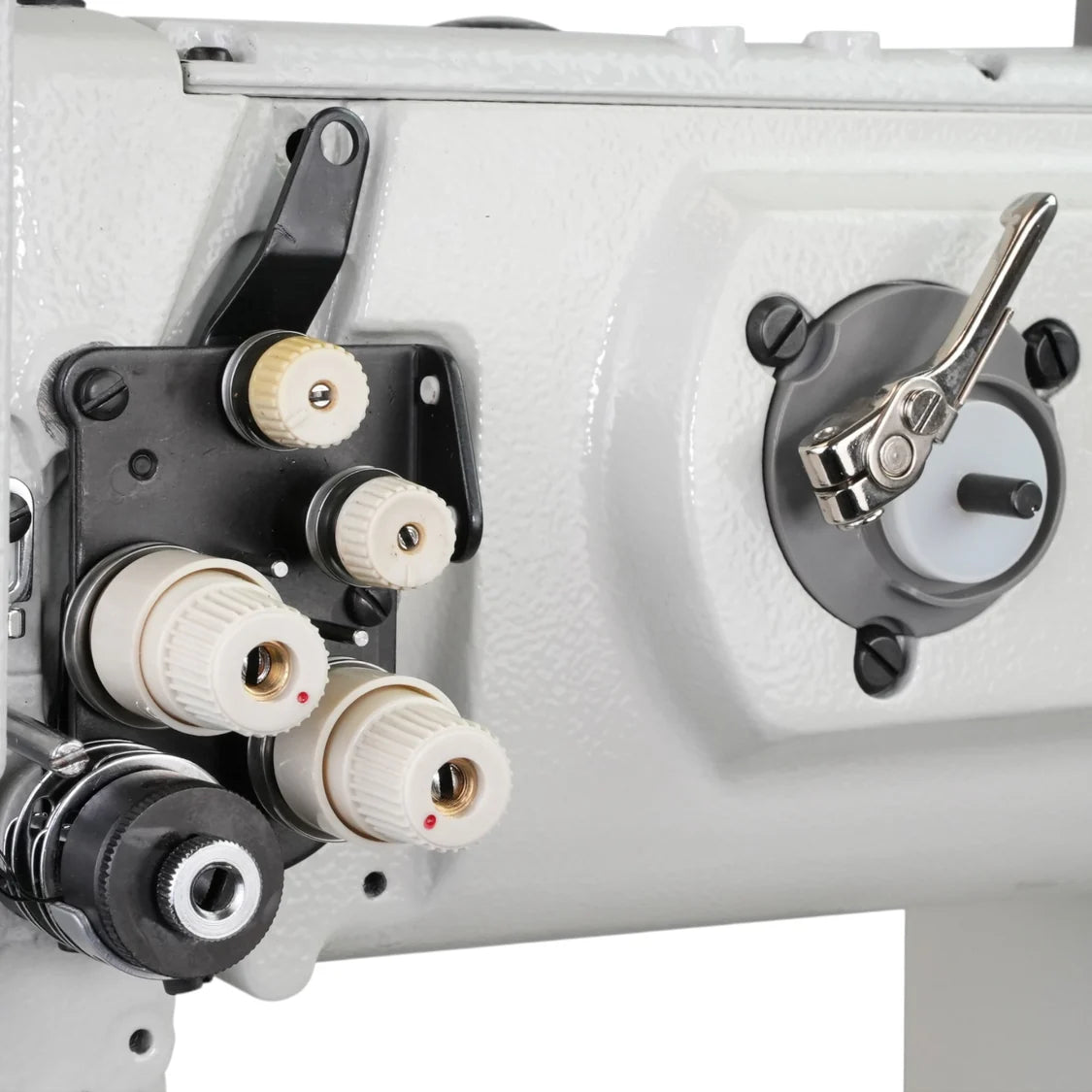 - Easy Adjustment Dial: Large top-mounted dial for quick adjustment of presser foot and walking foot vertical motion.