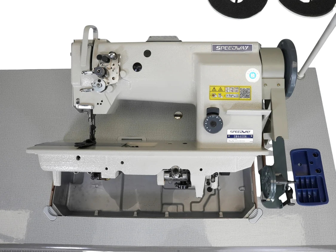 The SPEEDWAY SW-4400N is a heavy-duty industrial sewing machine designed for high-torque applications and precise operation on thick materials. Built with a triple feed (unison feed) system and a vertical-axis large hook, it ensures stable material handling, uniform stitches, and high reliability in continuous production environments.