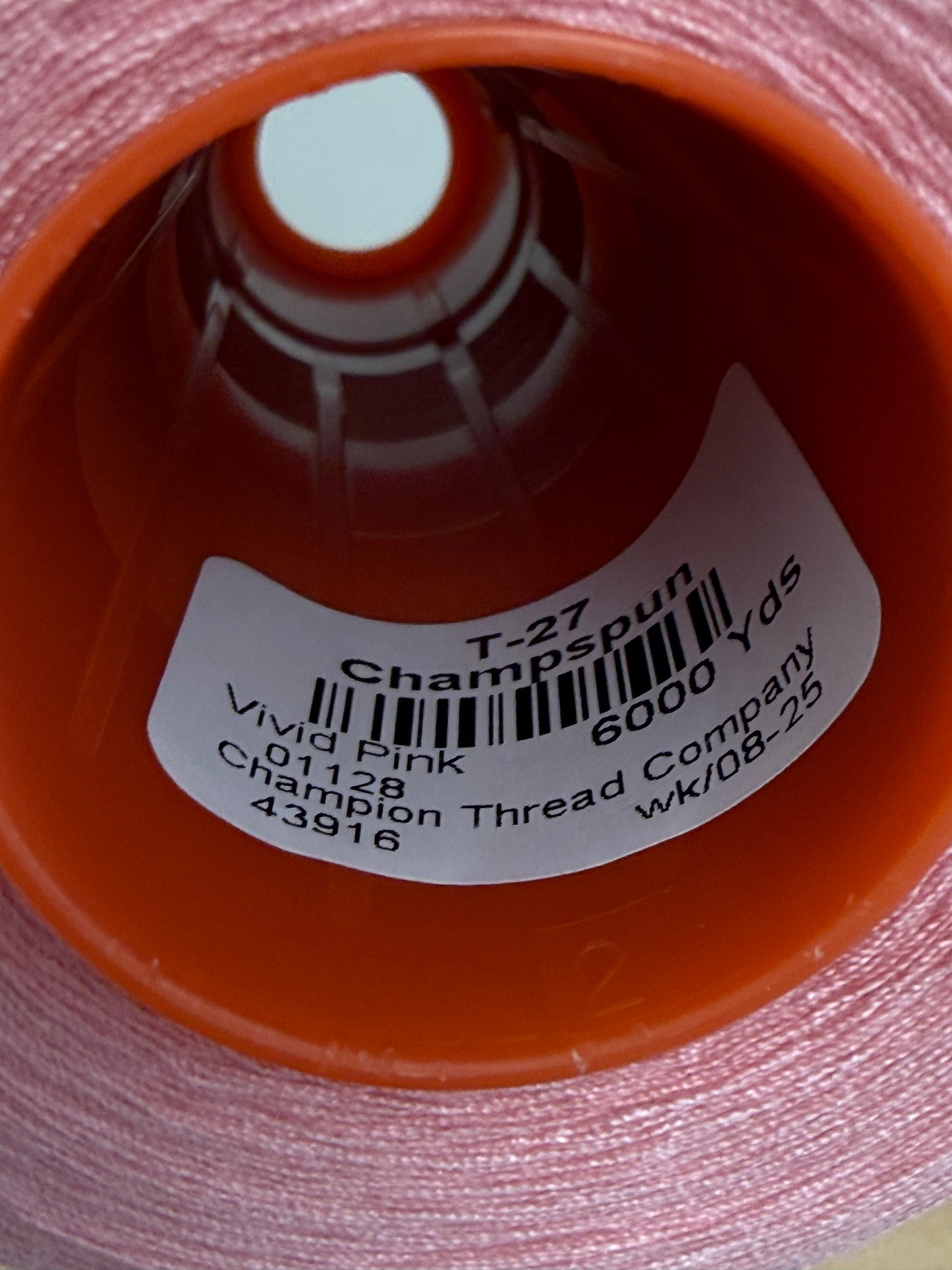 THREAD T-27 VIVID PINK-1128 POLYESTER CHAMPSPUN 6000 Yds