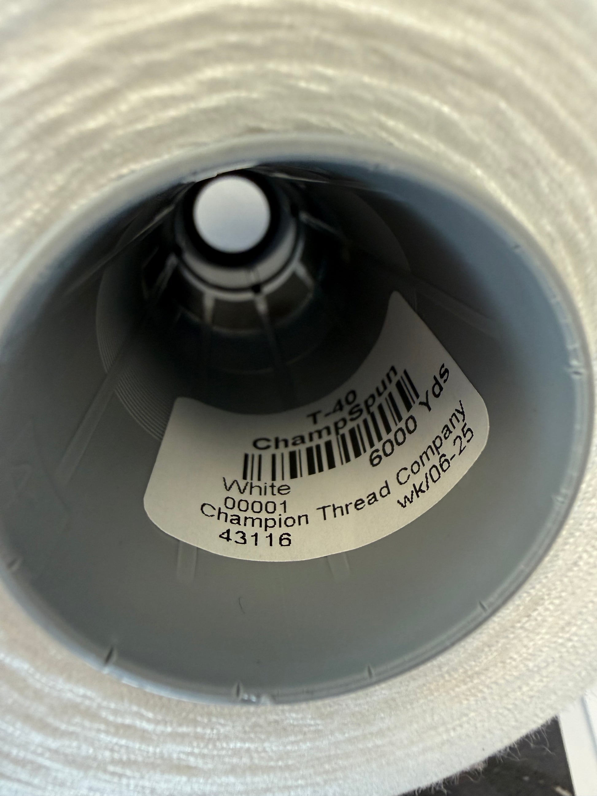 THREAD T-40 WHITE 0001 POLYESTER CHAMSPUN — 6000 yds